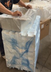 Before loading, all cartons are inspected to ensure they are properly sealed, labeled, and in perfect condition. Damaged or wet packaging is immediately replaced.
