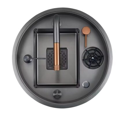 Small Round Handmade Stainless Steel Workstation Sink Hidden Kitchen Bar Sink with Cup Washer