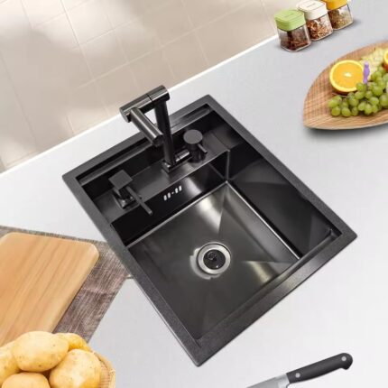 • Black stainless steel concealed bar sink, hand-held portable sink, small concealed balcony sink with faucet and cup washer Black stainless steel concealed bar sink, hand-held portable sink, small concealed balcony sink with faucet and cup washer