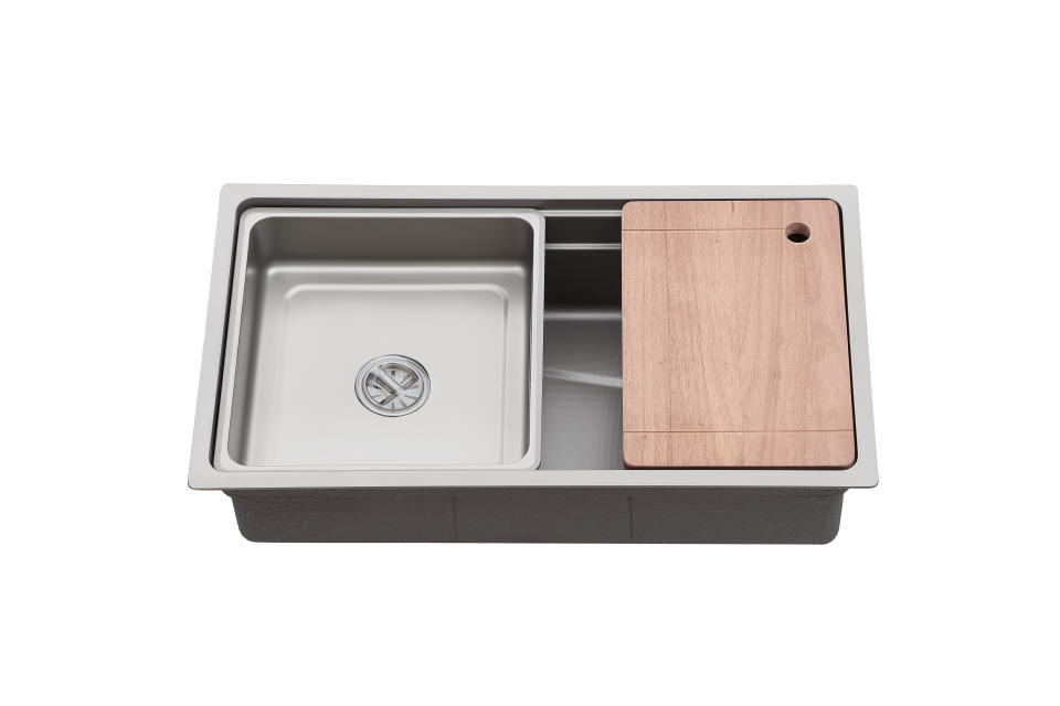 Anti-scratch embossed double-track right-side drainage under-mounted stainless steel kitchen sink