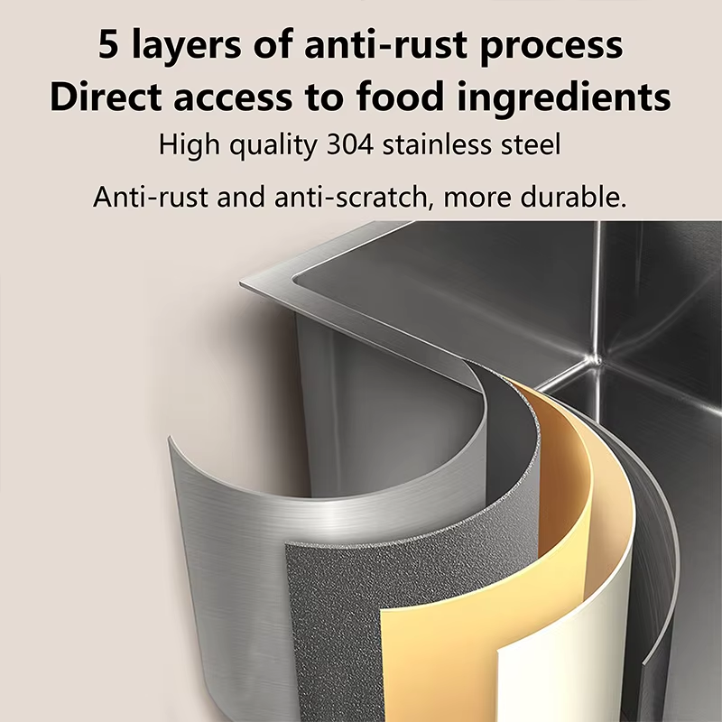 The scratch-resistant stainless steel kitchen sink