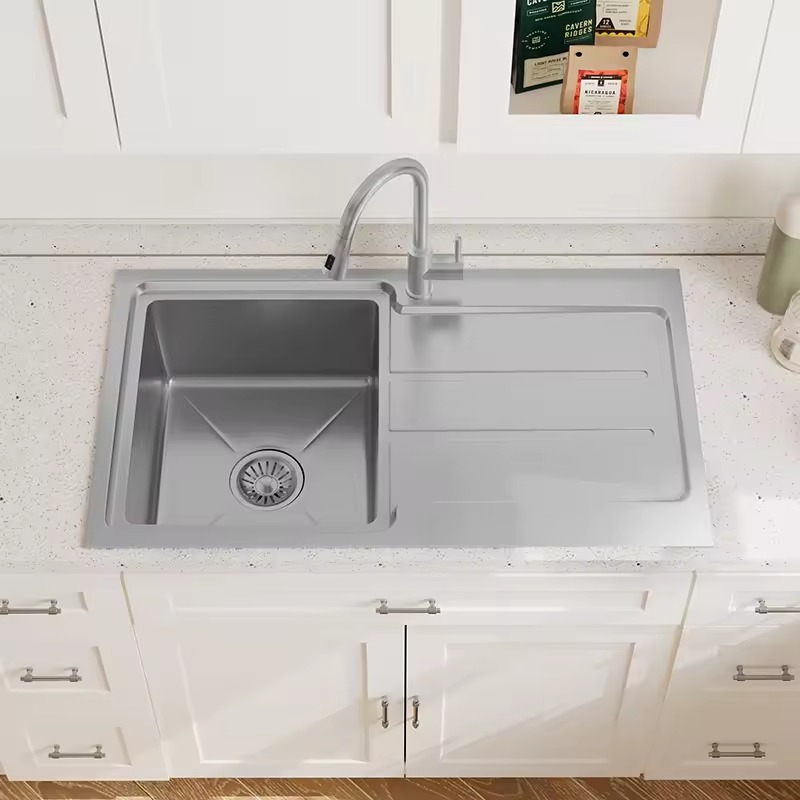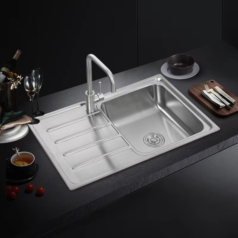 Home Drainboard Sink Kitchen Sink 304 Stainless Steel Top Single Bowl with Drainage Plate
