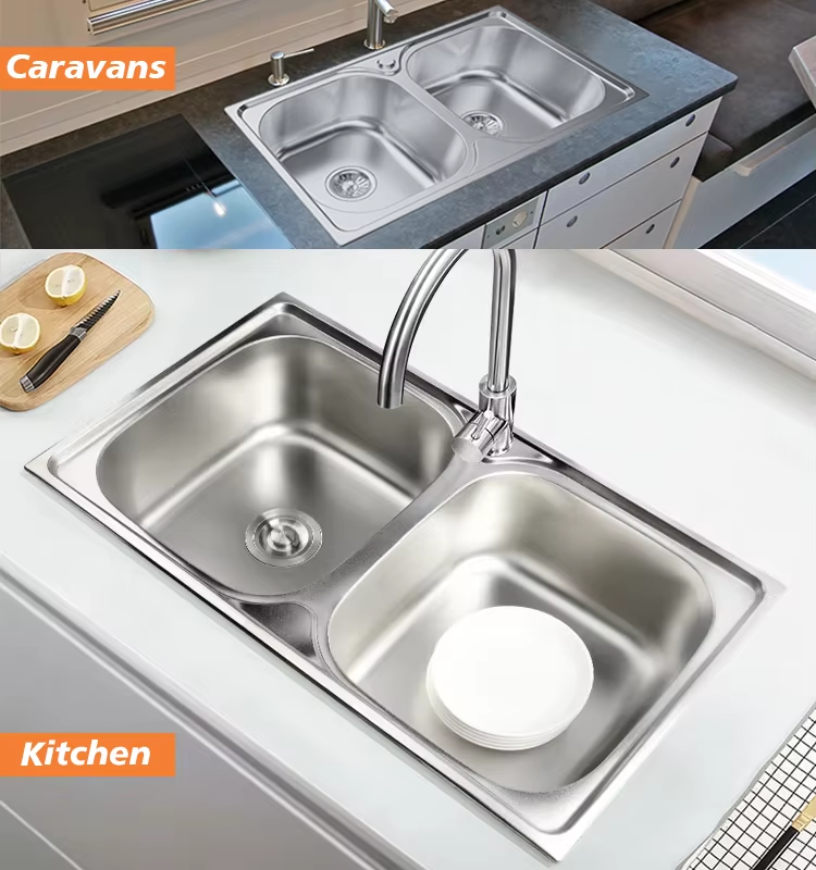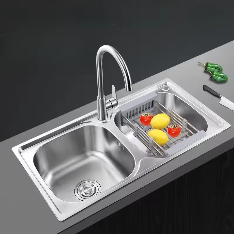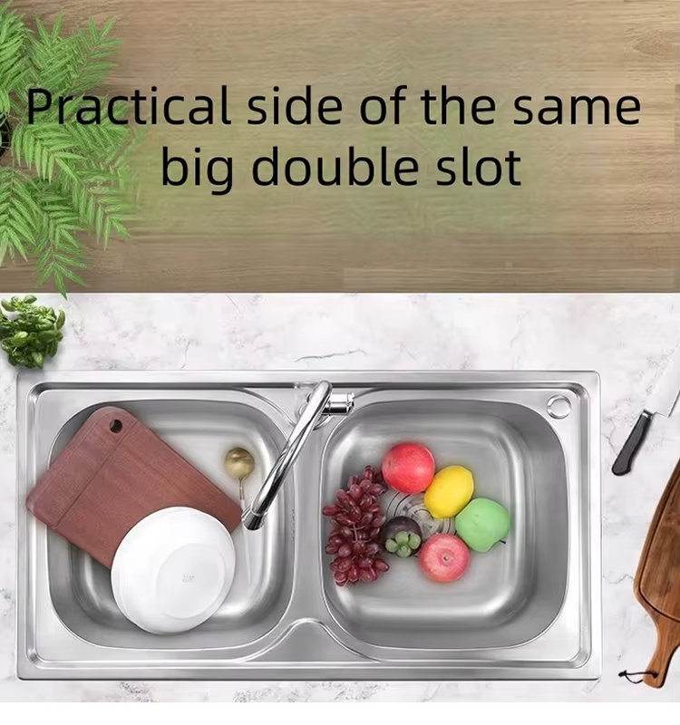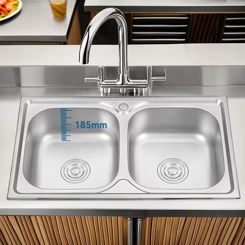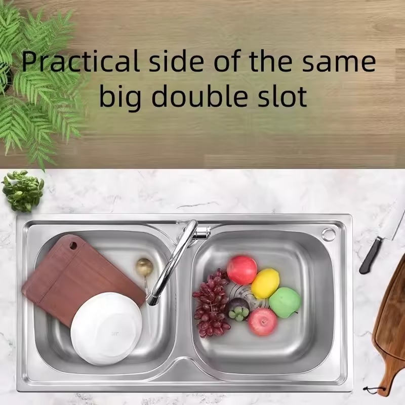Home Pressed Sink Top Mount Large capacity 304 stainless steel double bowl kitchen sink for undermount installation with single hole