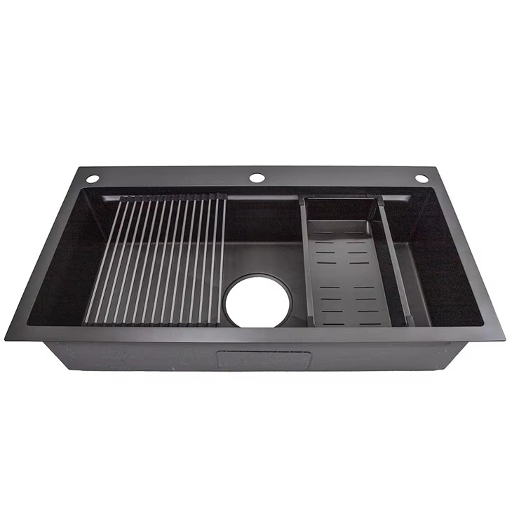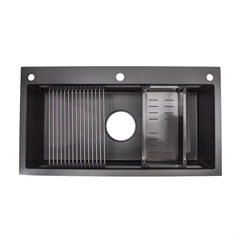 Large hole single bowl kitchen sink stainless steel silent moisture-proof multi-functional handmade kitchen sink