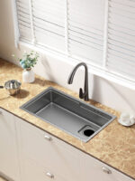 Stainless steel single-bowl kitchen sink in 304 material, installed below, rectangular nano design