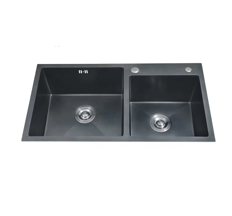 Stainless steel stretched double bowl kitchen sink